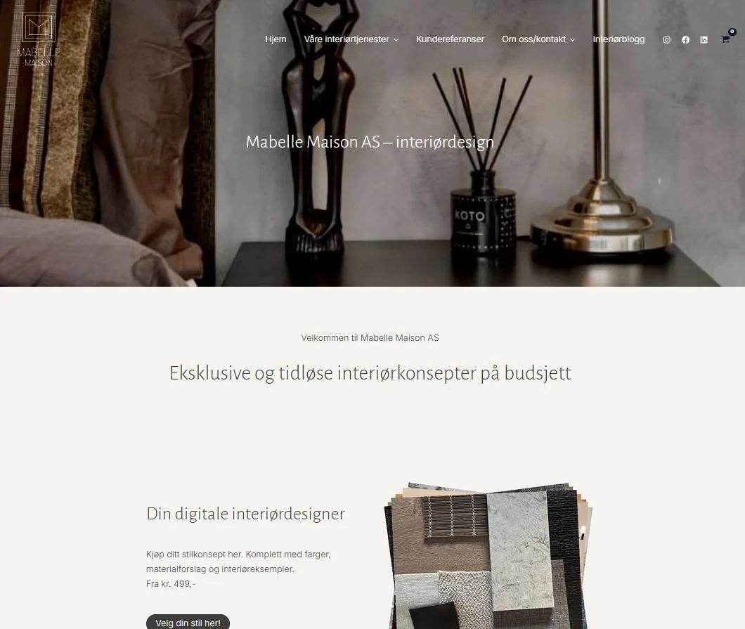Nye websider for Mabelle Maison AS inkluderer også annonseringsplan, markedsstrategi og SEO - også for AI